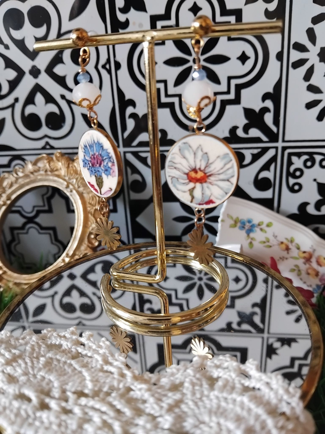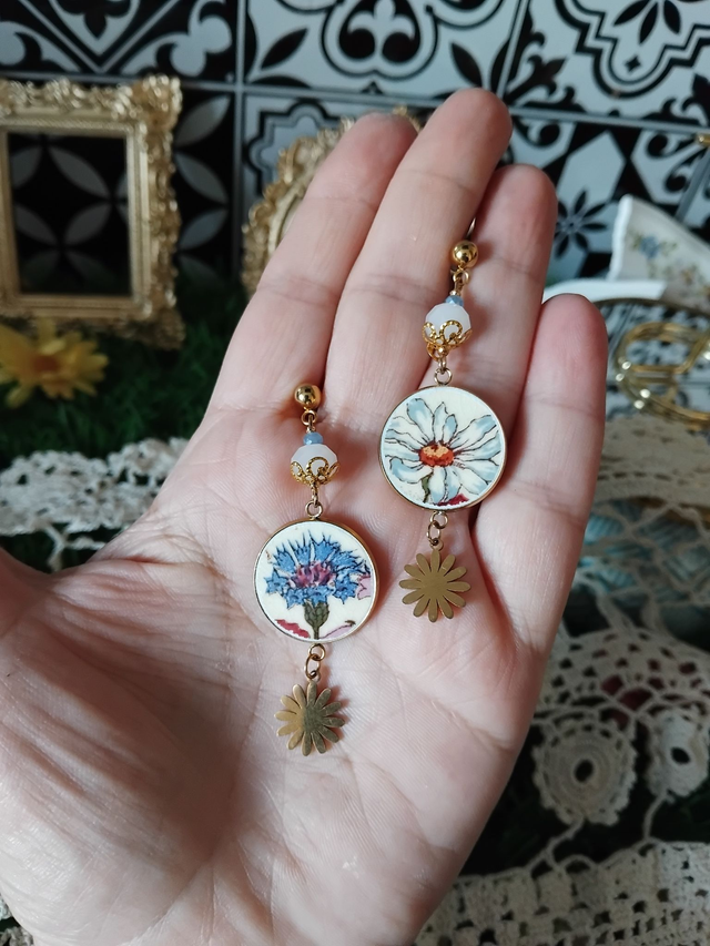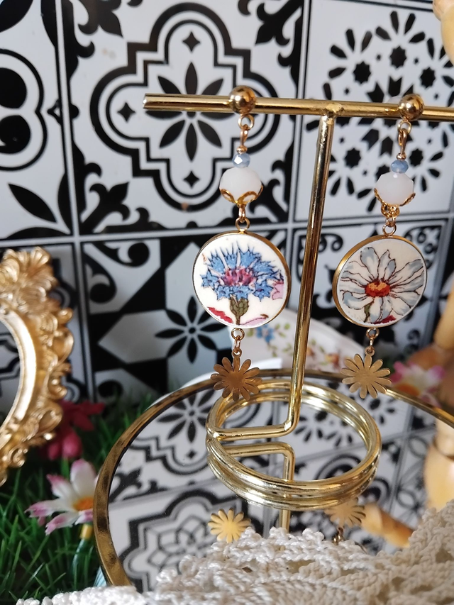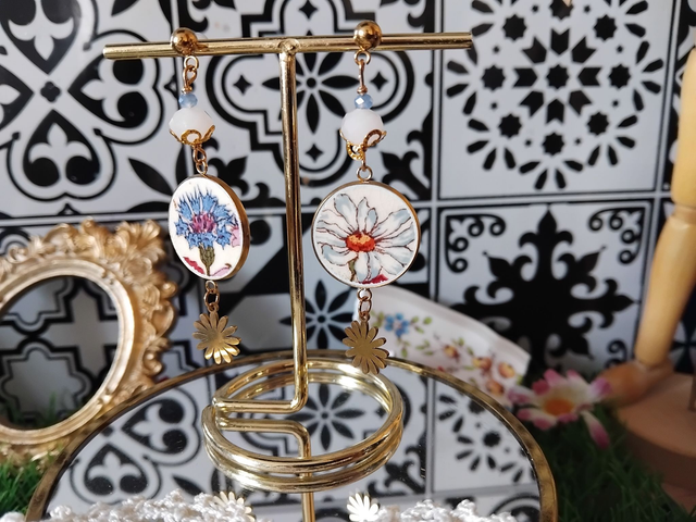 jolie paire de boucles d'oreilles réalisée avec de la vaisselle ancienne de Sarreguemines.