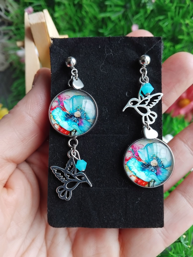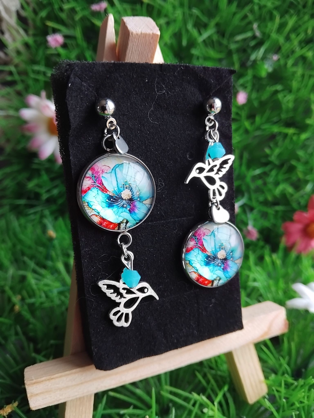 jolie paire de boucles d'oreilles colibris