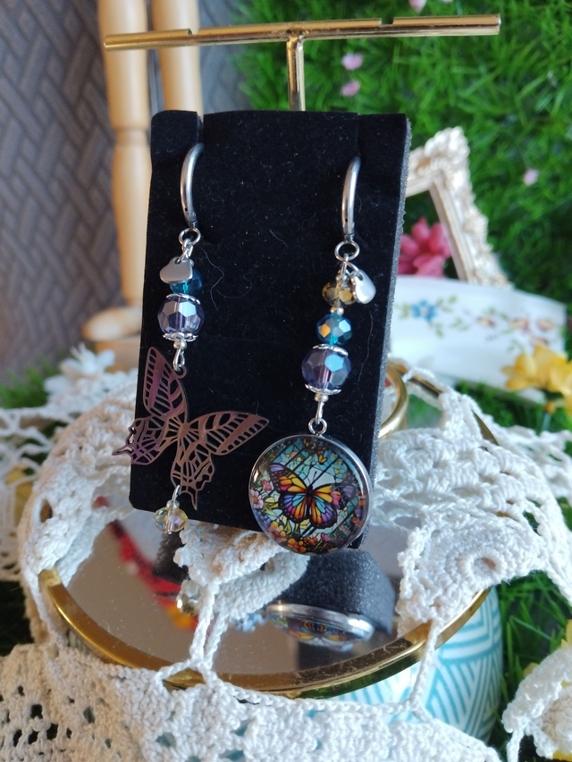 cabochon en verre, perles de verre tchèque, acier inoxydable