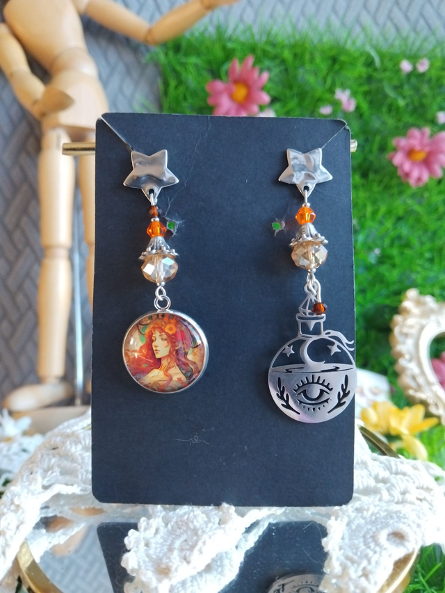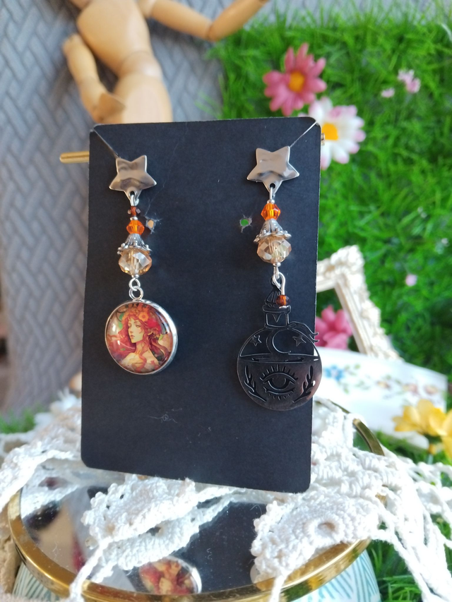 cabochon en verre, perles de verre tchèque, acier inoxydable