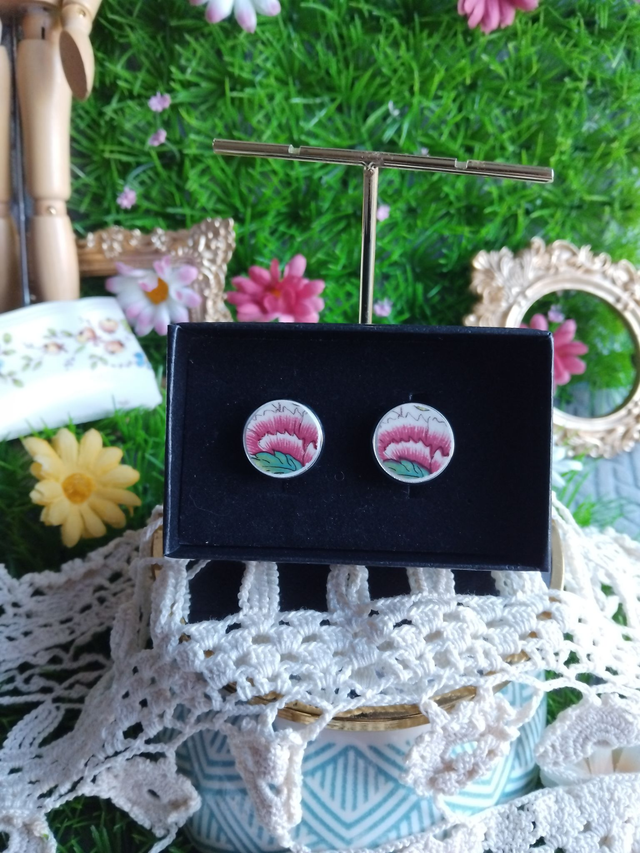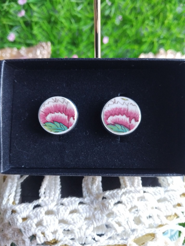 jolie paire de boutons de manchette, réalisation unique avec de la vaisselle ancienne.