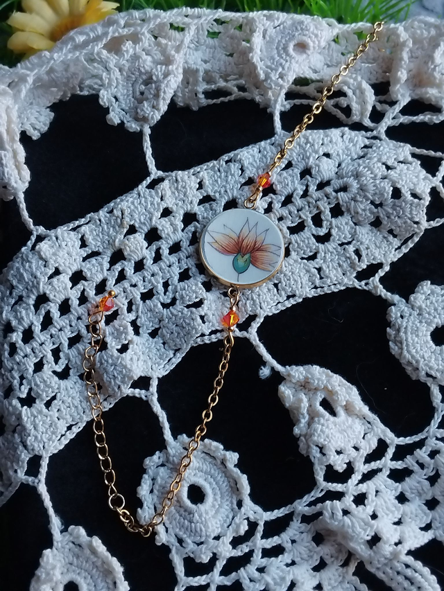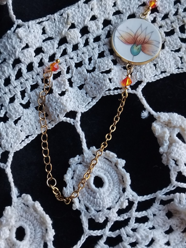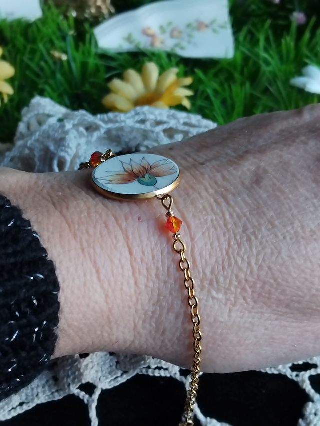 chaine en acier inoxydable doré, perles de verre svarowski fire opal