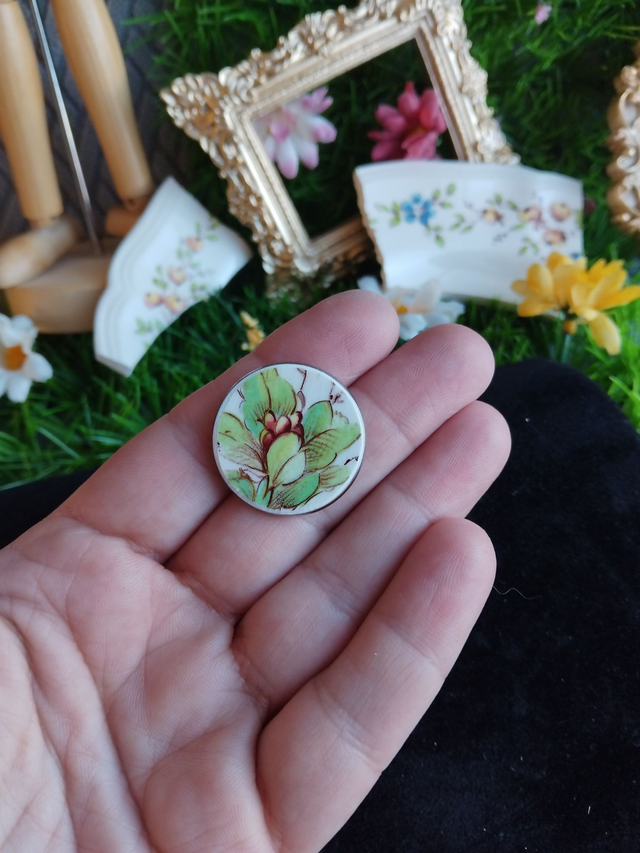 monté sur un support en acier inoxydable argenté avec fermeture pin's