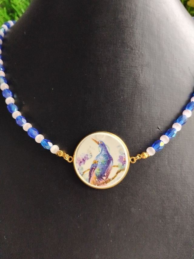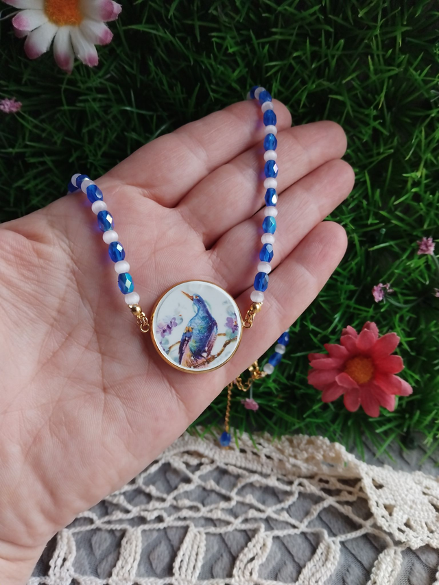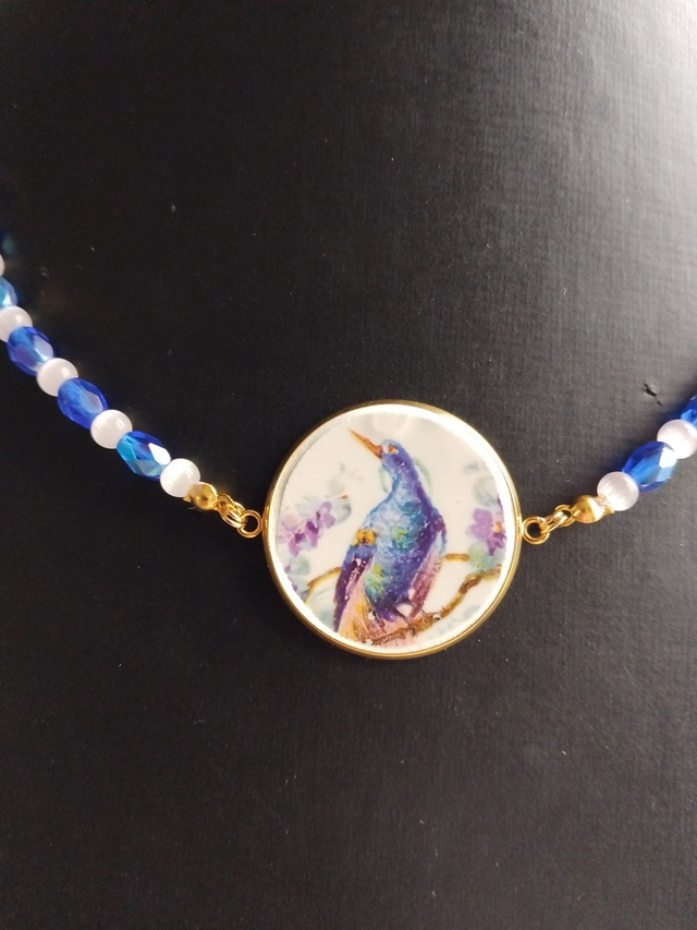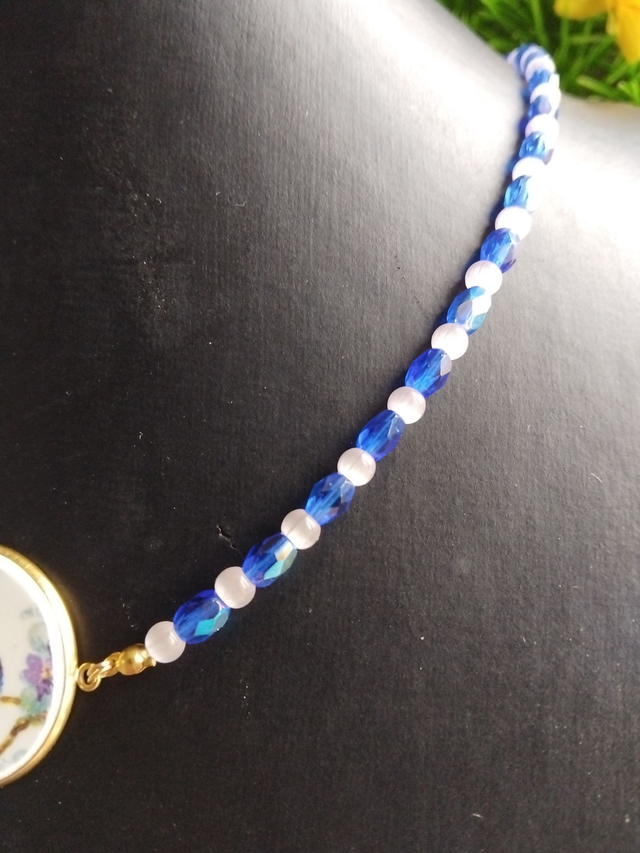 collier avec un joli pendentif réalisé avec de la vaisselle ancienne