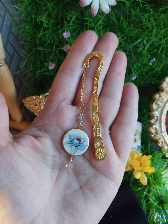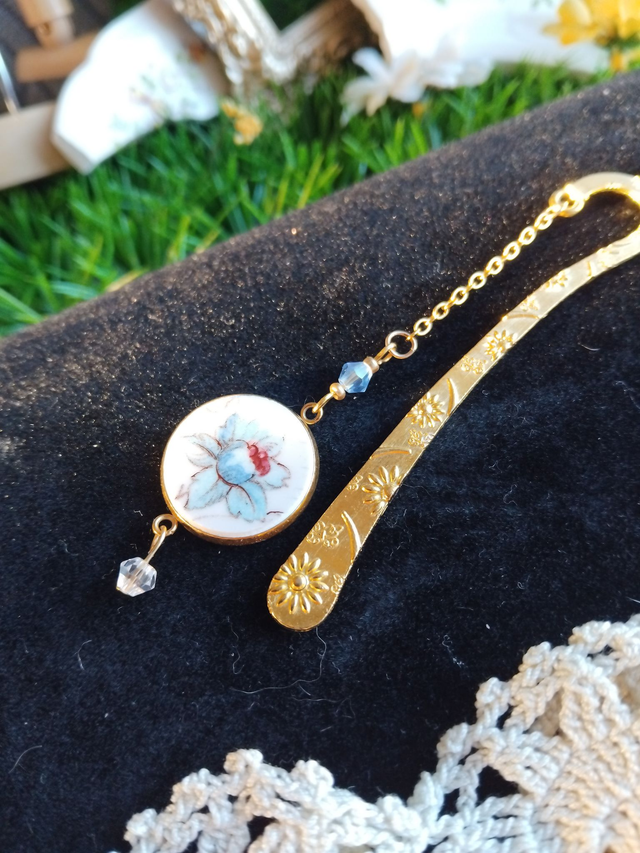joli marque pages en alliage de zinc doré, réalisé avec de la vaisselle ancienne