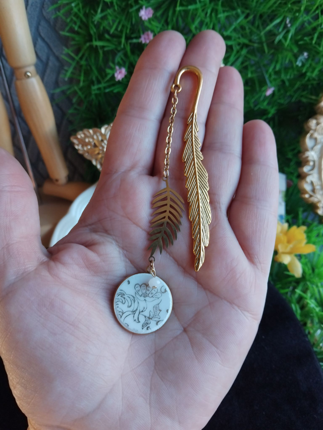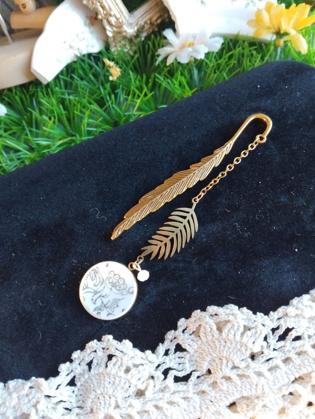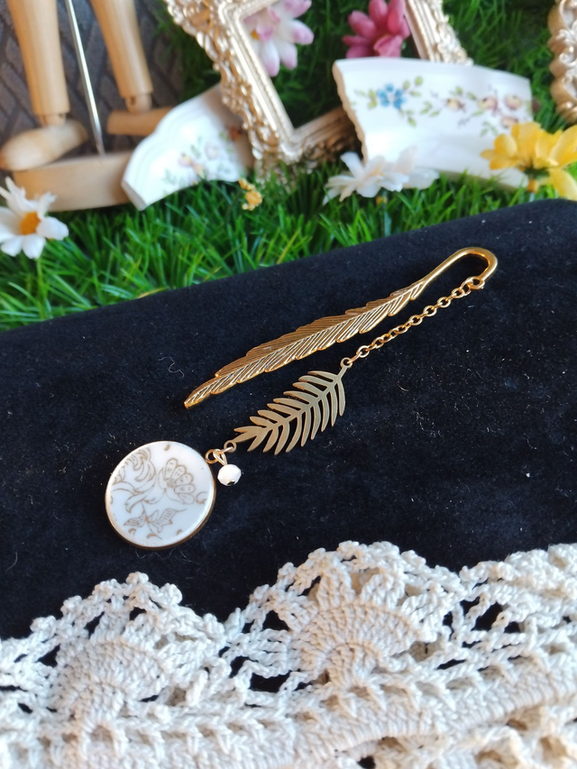 joli marque pages en alliage de zinc doré, réalisé avec de la vaisselle ancienne