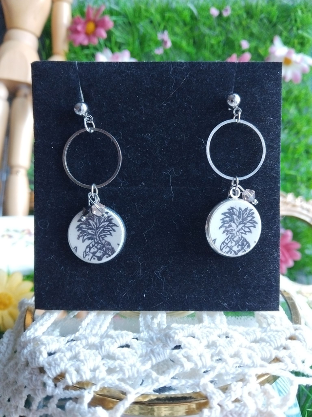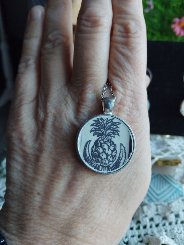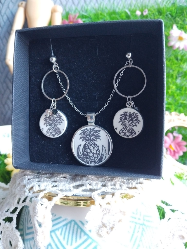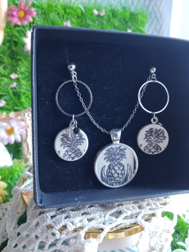 jolie parure de bijoux réalisée avec de la vaisselle ancienne, motifs ananas