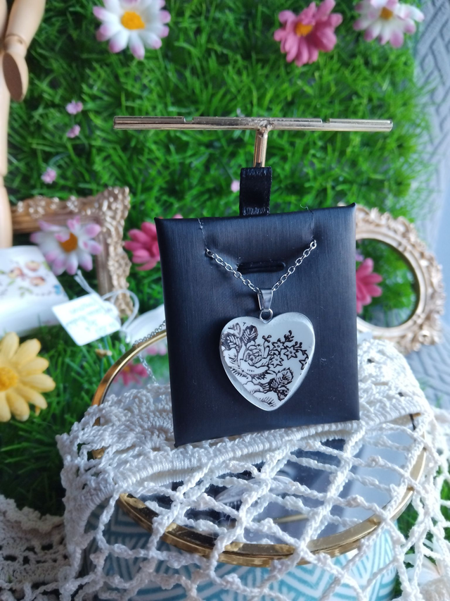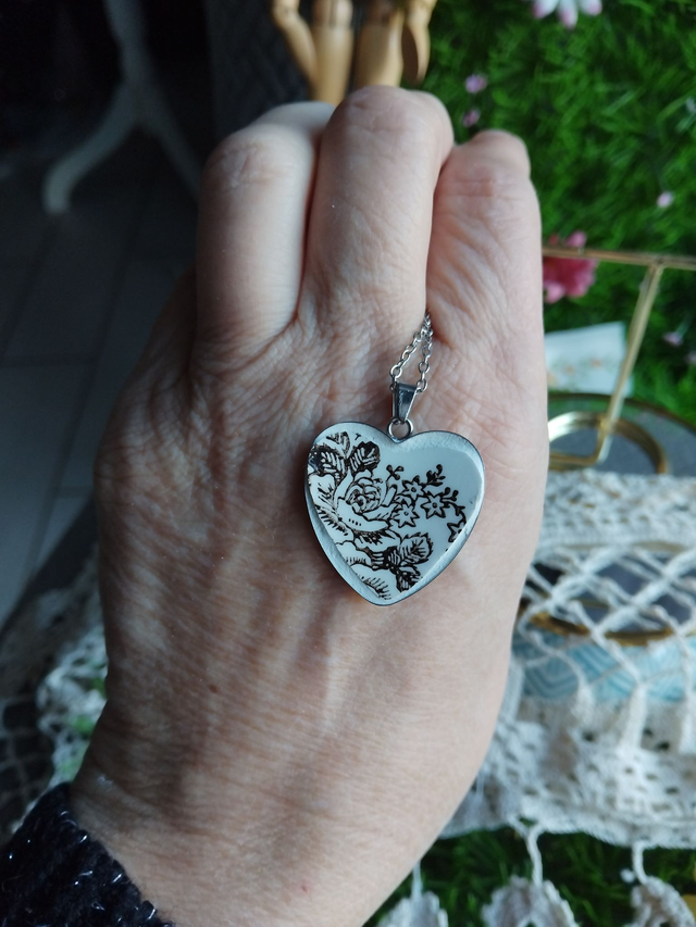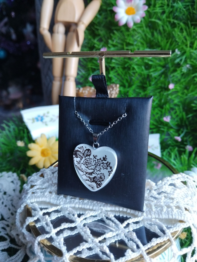 joli pendentif créé avec de la vaisselle ancienne, motif fleurs marrons