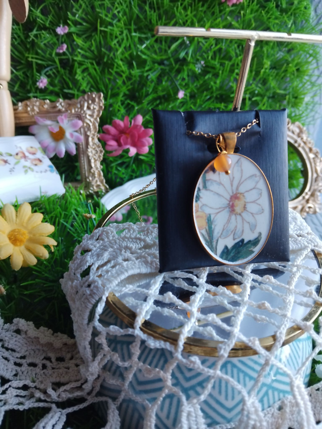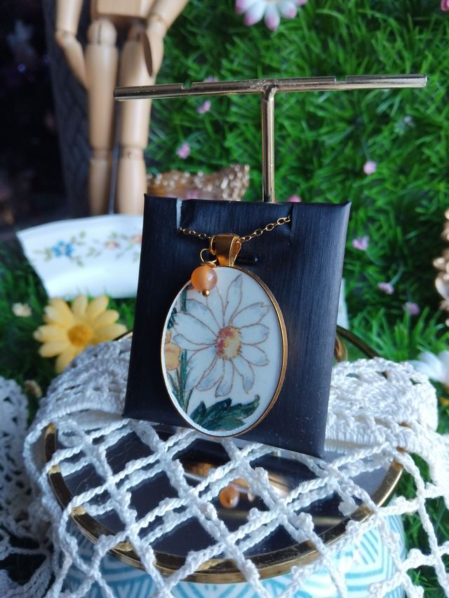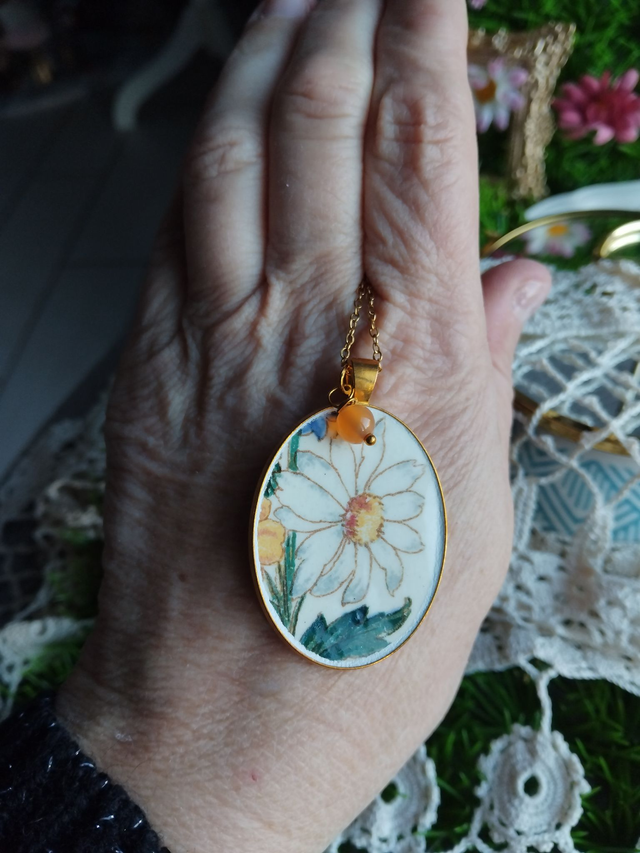 joli pendentif créé avec de la vaisselle de Sarreguemines, motif marguerite