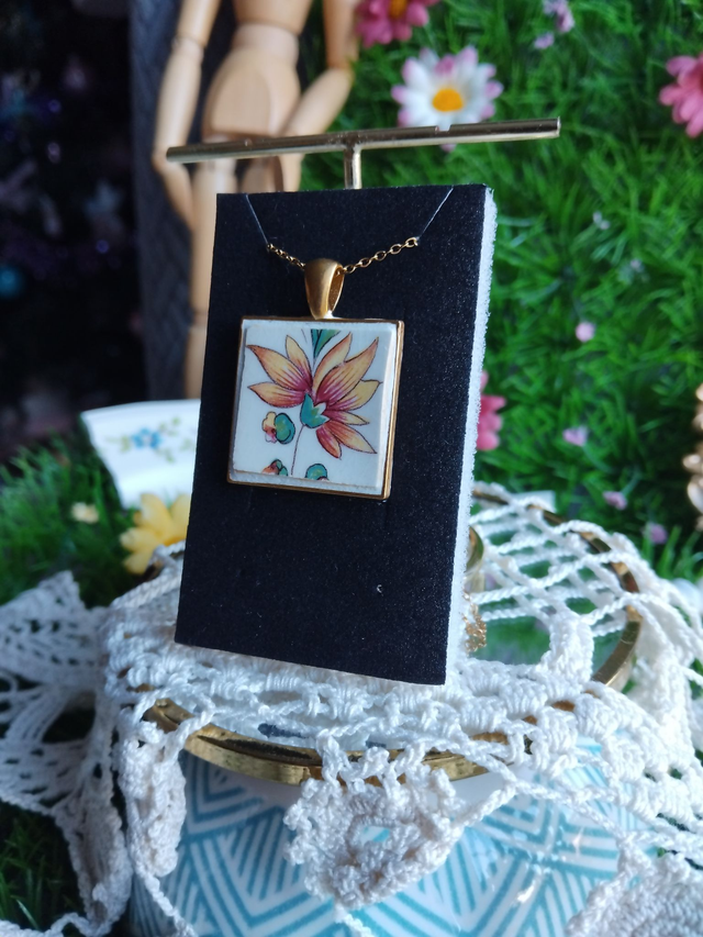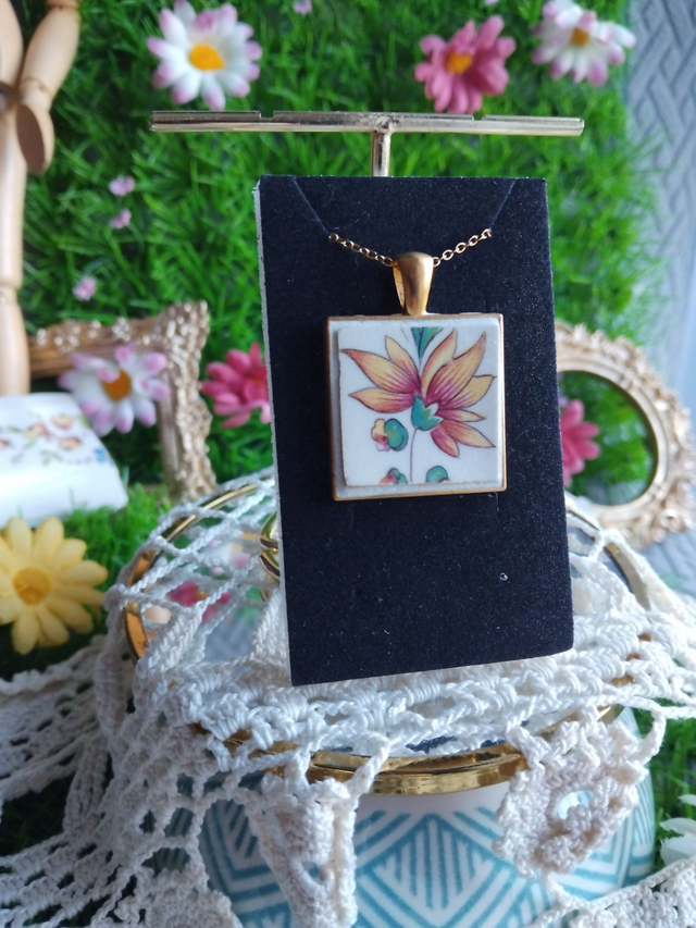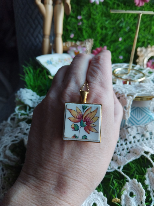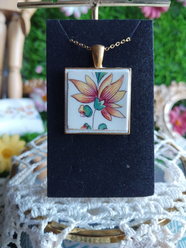 joli pendentif créé avec de la vaisselle ancienne