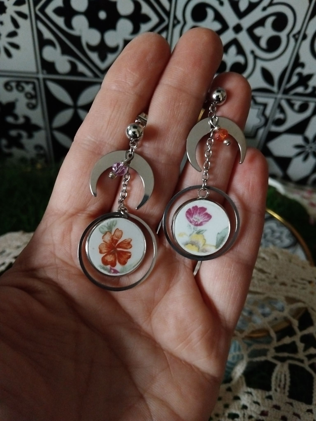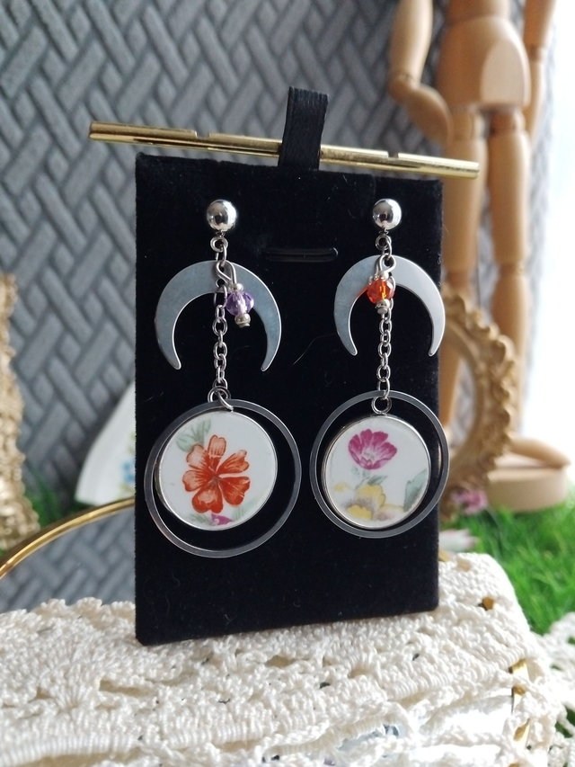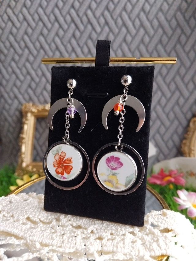 Jolie paire de boucles d'oreilles créée avec une vaisselle ancienne