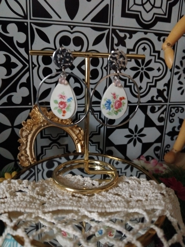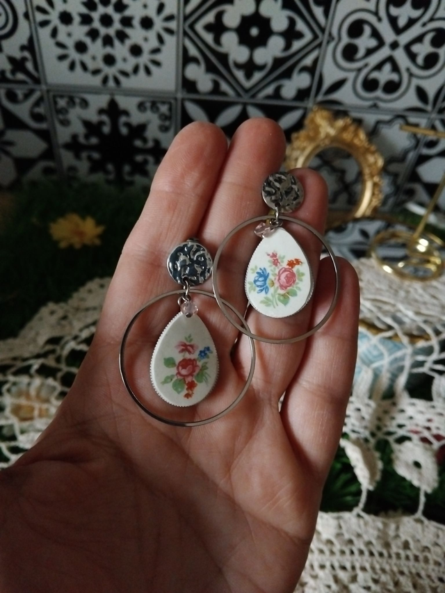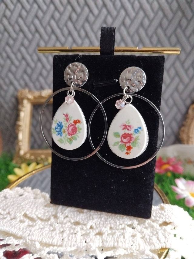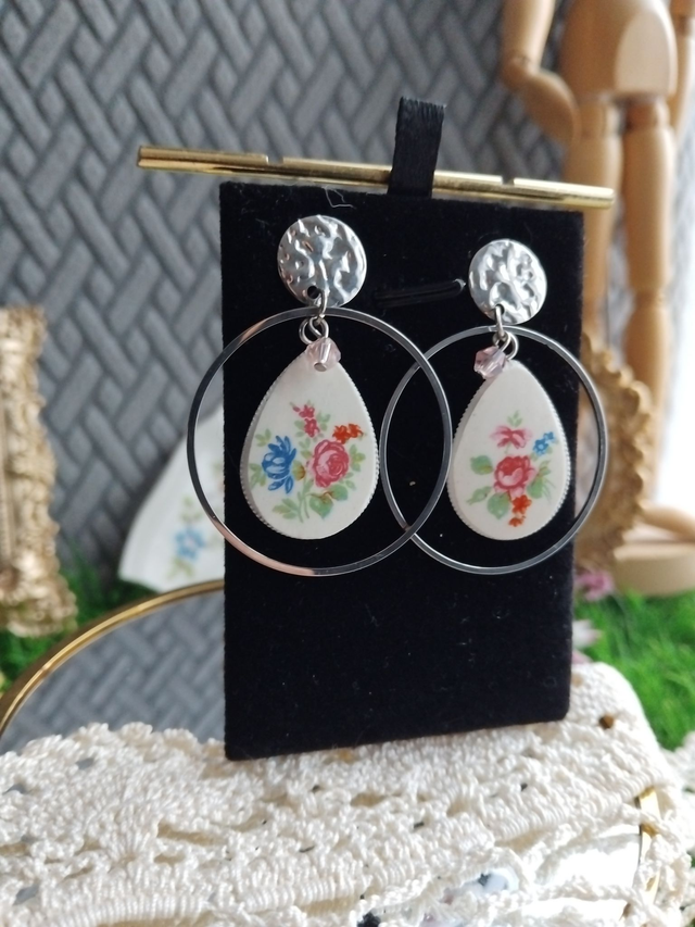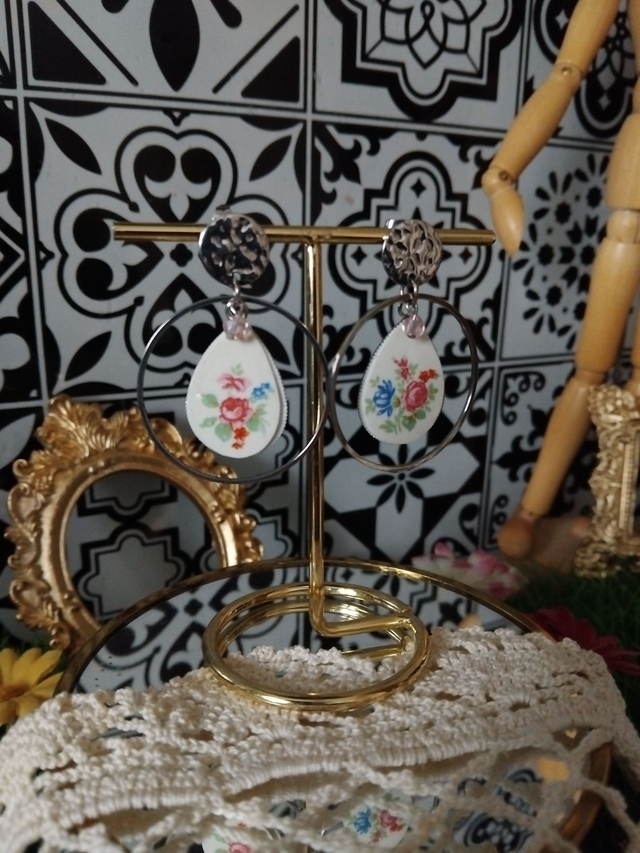 Boucles d'oreilles réalisées avec de la vaisselle ancienne