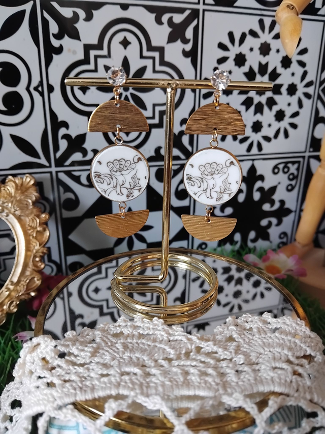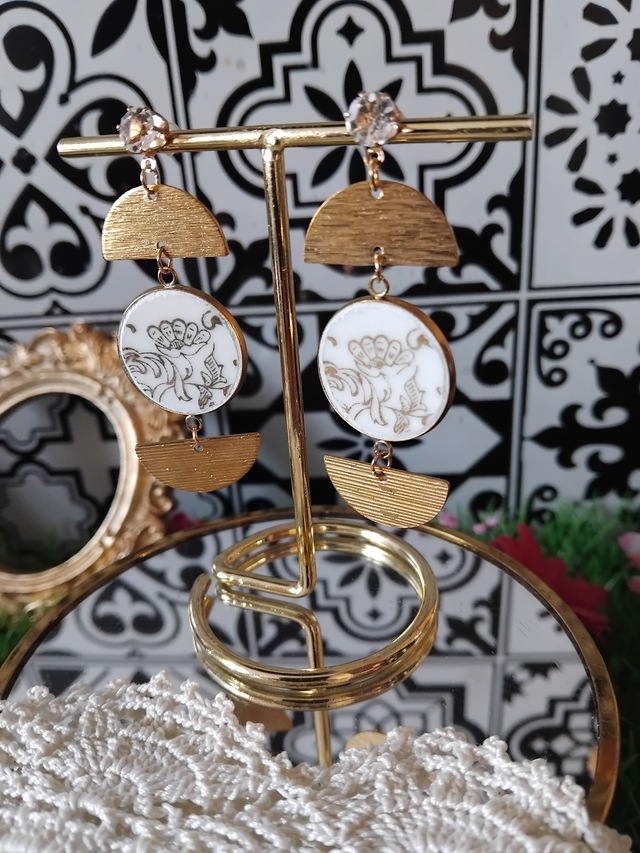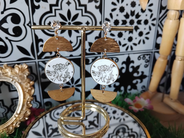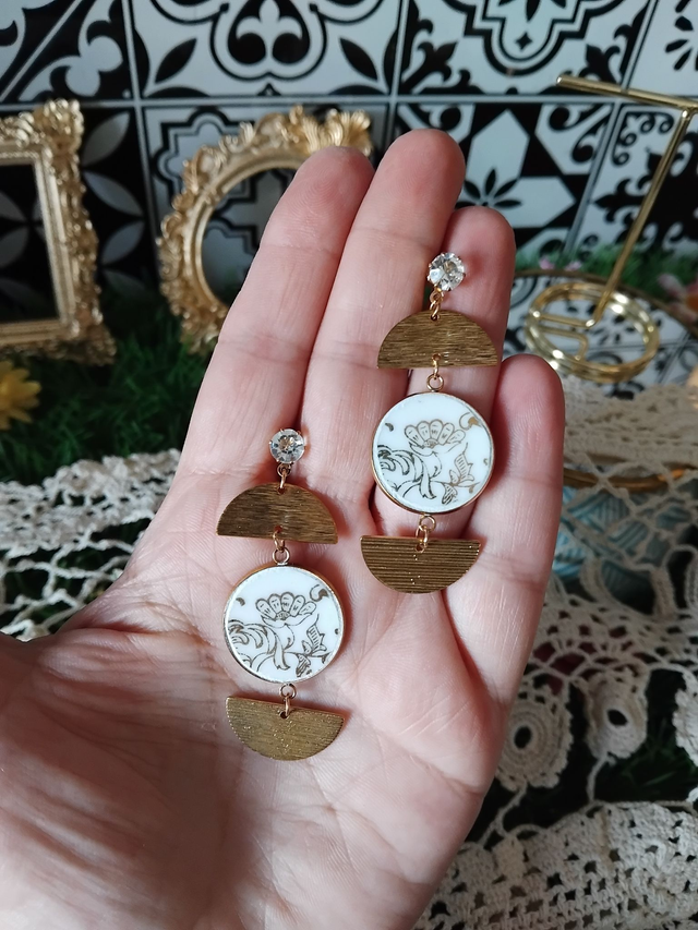 Jolie paire de boucles d'oreilles réalisée à partir de vaisselle ancienne.